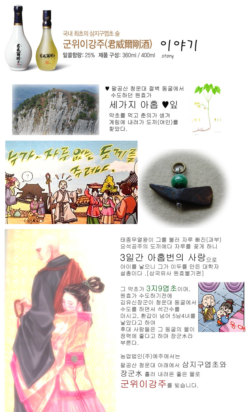 원효가 마신 삼지구엽초술- 君威爾剛酒(군위이강주) 일반증류주 알코올 25% / 360ml 2병/셋트
